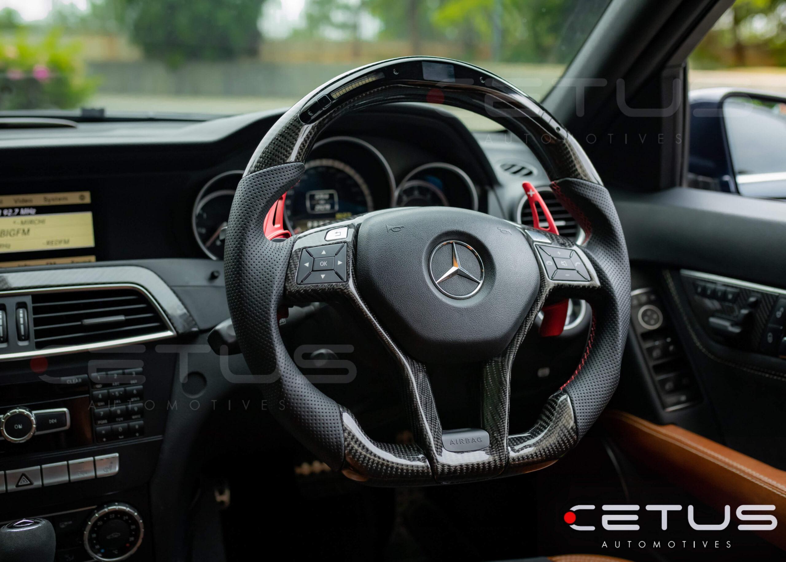 We upgraded the seats inside this Mercedes-Benz AMG C 63 with a custom combination of Brompton leather, which feels opulent as much as it looks, and Alcantara. The new custom upholstery is embellished with beige double stitching all across. Are you looking to upgrade your seats with something similar? Drop us a line with what you have in mind and we’ll take it from there.